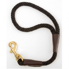 Large Snap Lead/Leash handcrafted by Mendota in the USA; 1/2"(13mm) solid braid polypropylene rope & 16" (40cm) long. With solid brass swivelling snap hook, loop handle & leather accents.