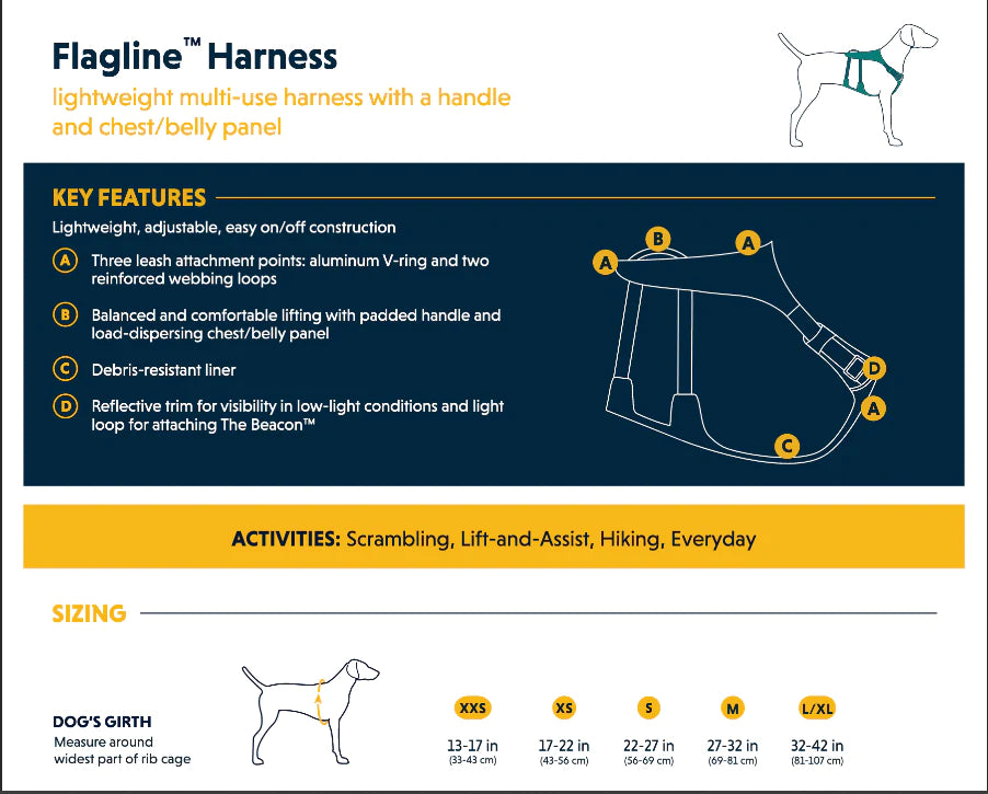 High adjustability and easy on/off make the Flagline secure and accessible, giving dogs a little boost and a lot of freedom when the path ahead is anything but flat.