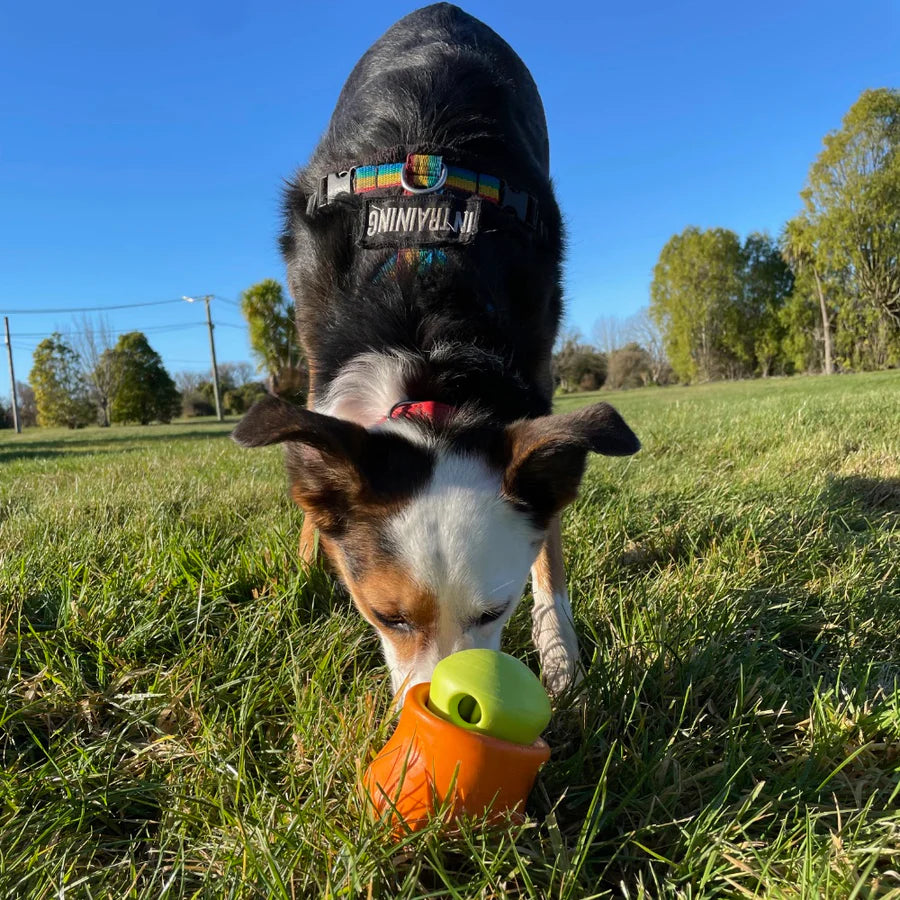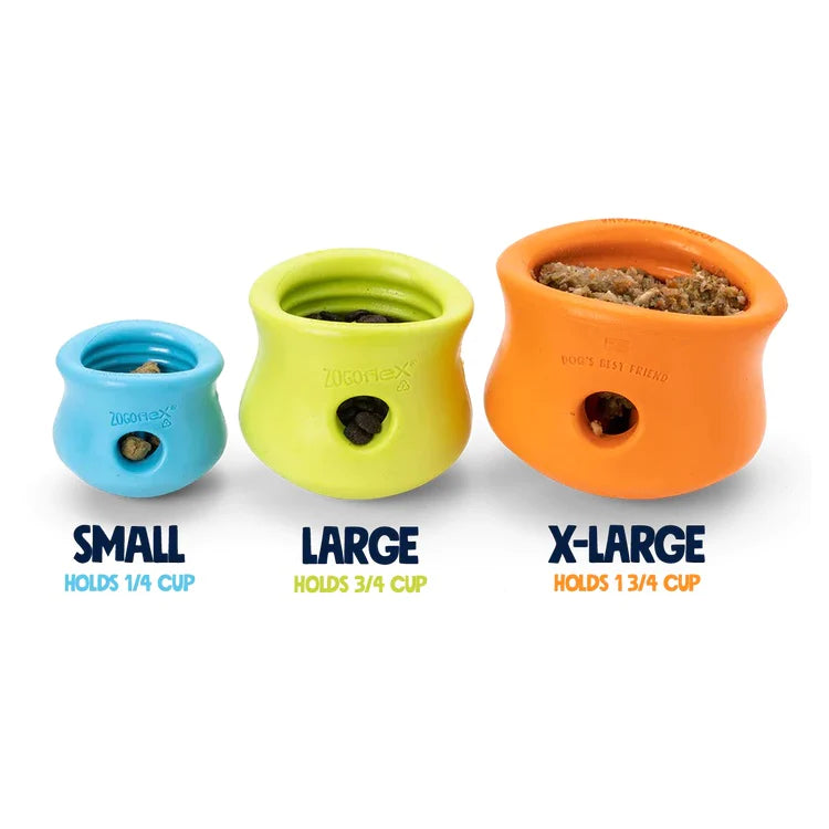 This award-winning treat toy is safe for every pet as it's durable and designed to be filled with a dog's favorite kibble or treats, Toppl's soft, rounded inner 'teeth' contain a contoured cavity to hold treats in place until your dog nudges them out. To change up the challenge, simply connect the small and large (sold separately) to make Toppl even tougher.